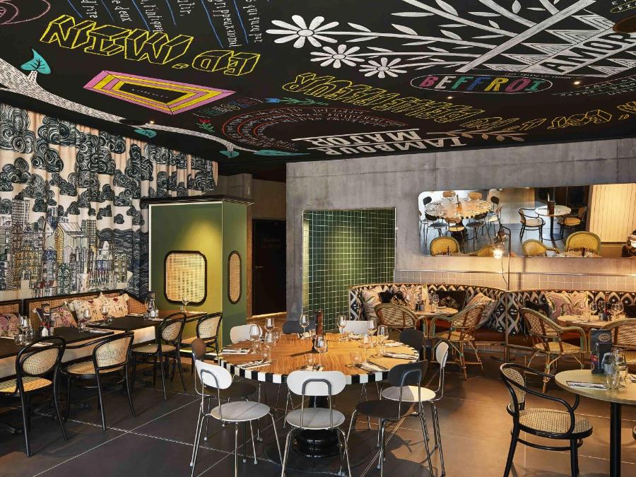 Das gastronomische Angebot spielt eine zentrale Rolle im Erlebnis, das geboten wird. Das Restaurant, das täglich durchgehend von 12 bis 23 Uhr geöffnet ist, bietet hausgemachte Gerichte, die in Zusammenarbeit mit Sternekoch Guy Savoy kreiert wurden. Hier finden Sie gesellige und großzügige Rezepte, von der flämischen Carbonade bis hin zu neu interpretierten Klassikern wie Schinken-Nudeln oder Trüffel-Croque-Monsieur.