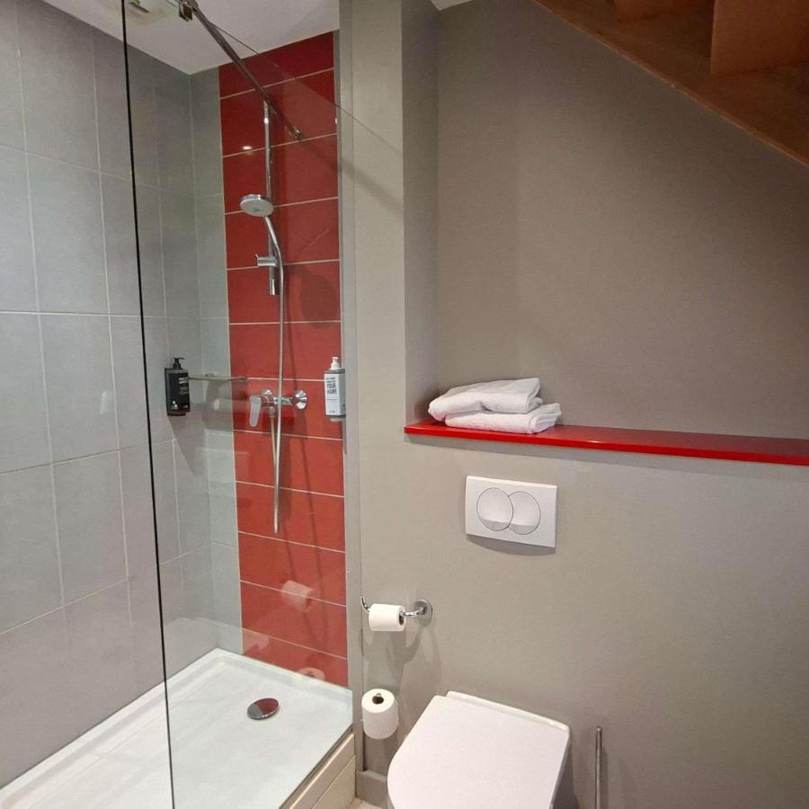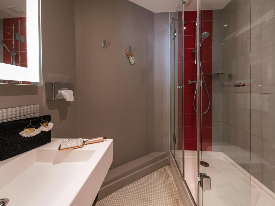 Chaque salle de bains dispose d’une douche à l’italienne claire et facile d’accès. La robinetterie thermostatique stabilise la température, tandis qu’un sèche-cheveux mural accélère la préparation matinale. Les produits d’accueil, au parfum végétal discret, évitent le plastique inutile grâce à des distributeurs rechargeables. L’équipe d’étage veille quotidiennement à la propreté irréprochable des lieux.