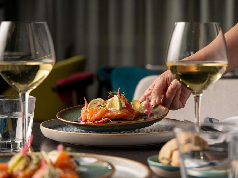 Le bar, ouvert en continu, accorde une place particulière aux bières locales. Il devient un point de rencontre apprécié, que l’on vienne s’y détendre après une journée de réunions ou simplement s’y poser pour observer le va-et-vient de la ville. L’ensemble des espaces communs a été rénové récemment dans un esprit coloré, à la fois fonctionnel et inspiré.
